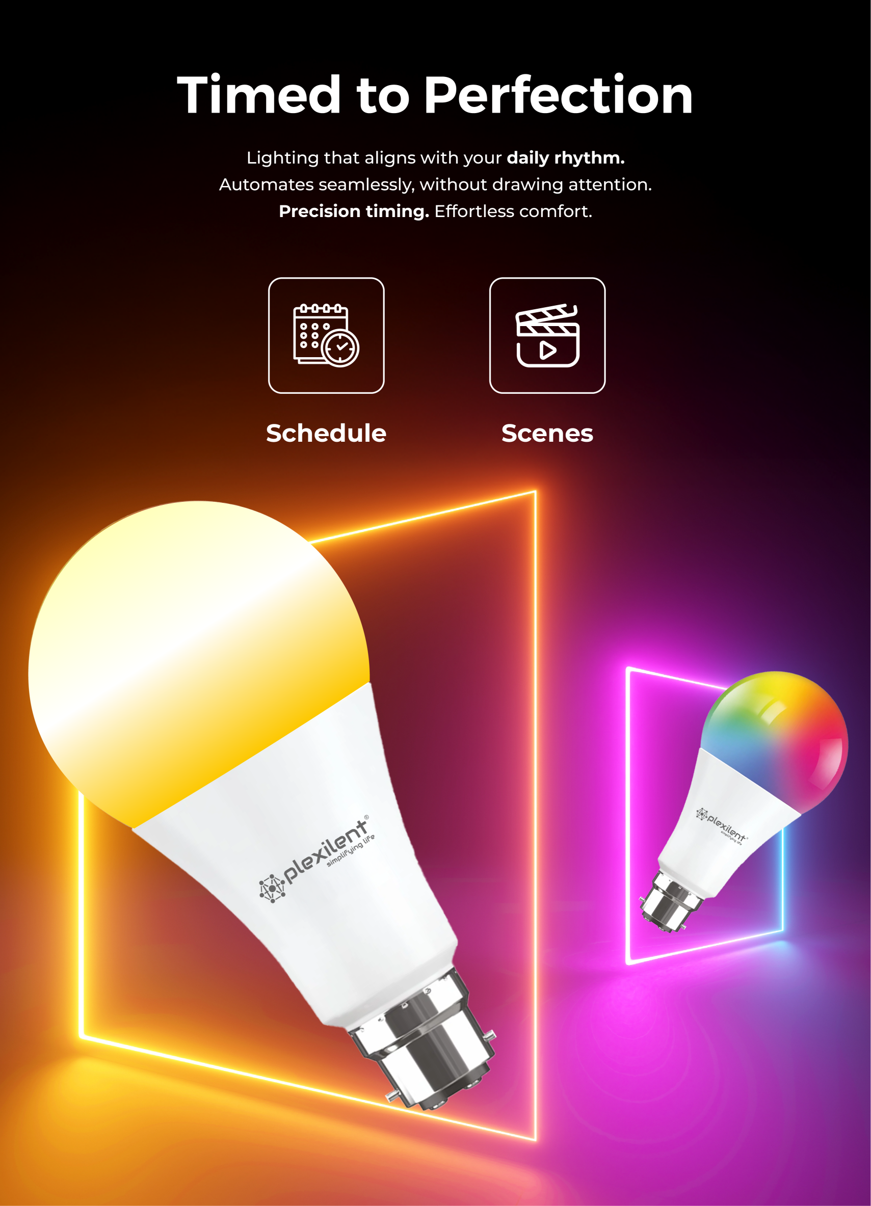 Create routines, control multiple lights together, and activate preset scenes in one tap. - Bio Rhythm